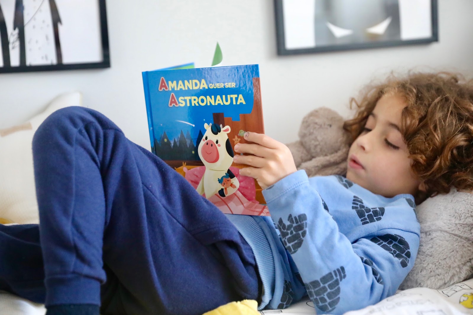 Cá por casa já lemos o primeiro conto - "Amanda quer ser astronauta" - e o Mateus adorou. O momento da leitura é sagrado cá em casa. Comecei a ler-lhe desde que era bebé e já faço o mesmo com a Benedita. Acho (ou, pelo menos, quero acreditar) que é meio caminho andando para virem a gostar de livros.